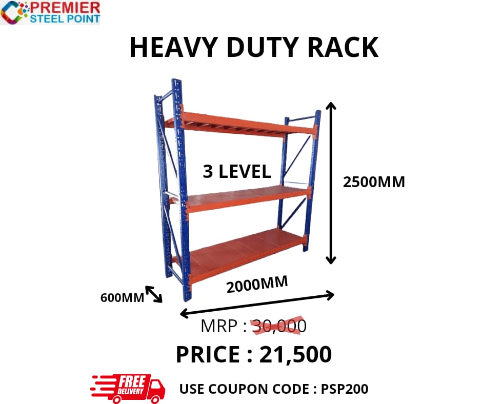 HEAVY DUTY RACK SIZE 600 MMx2000 MMx2500 MM (POWDER COATED) HAVING 3 LEVELS