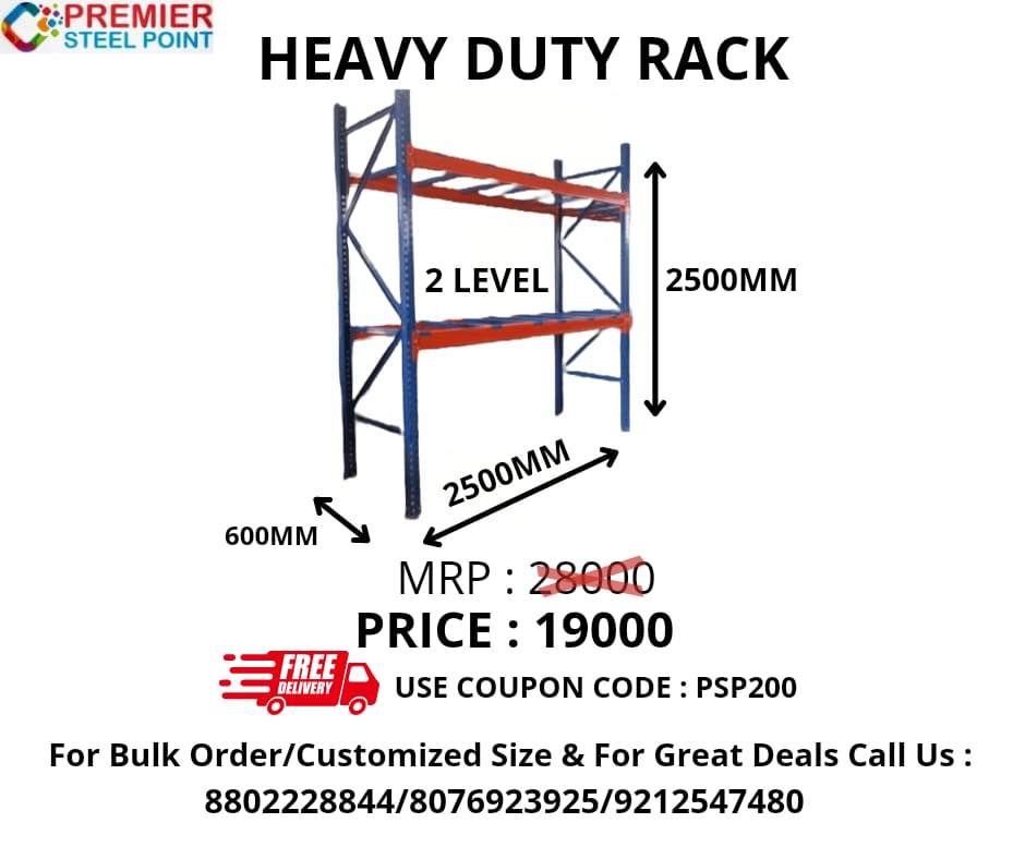HEAVY DUTY RACK SIZE 600 MMx2500 MMx2500 MM (POWDER COATED) HAVING 2 LEVELS