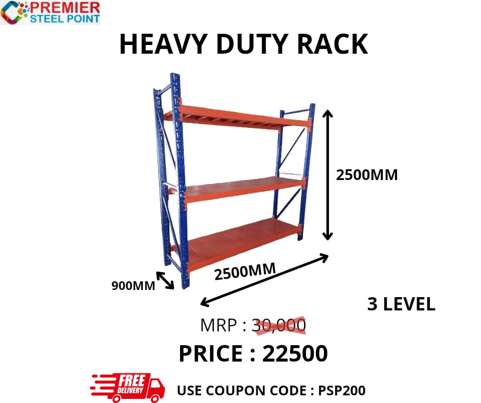 HEAVY DUTY RACK SIZE 900 MMx2500 MMx2500 MM (POWDER COATED) HAVING 3 LEVELS